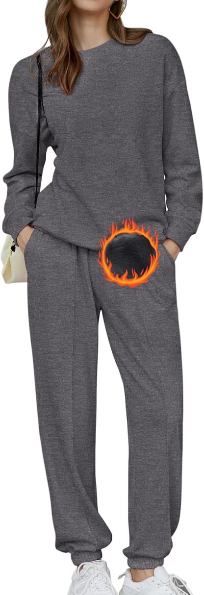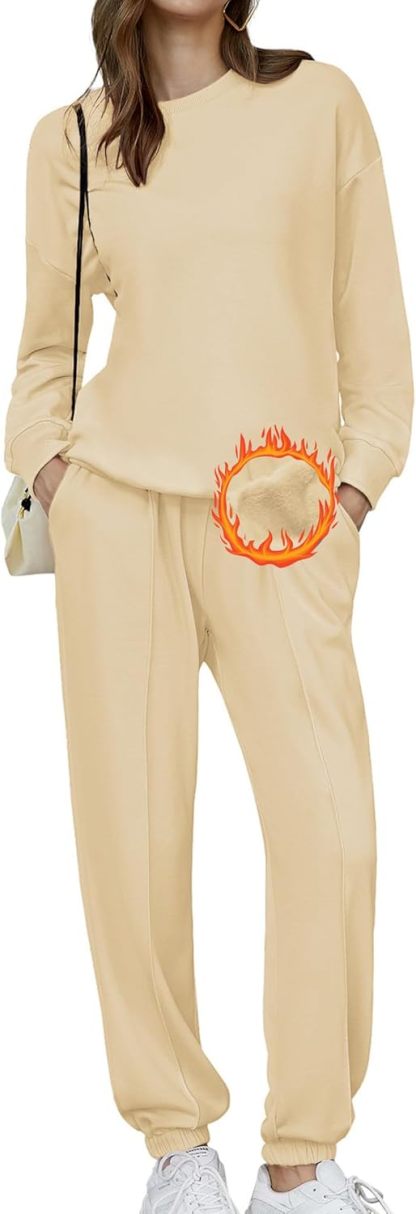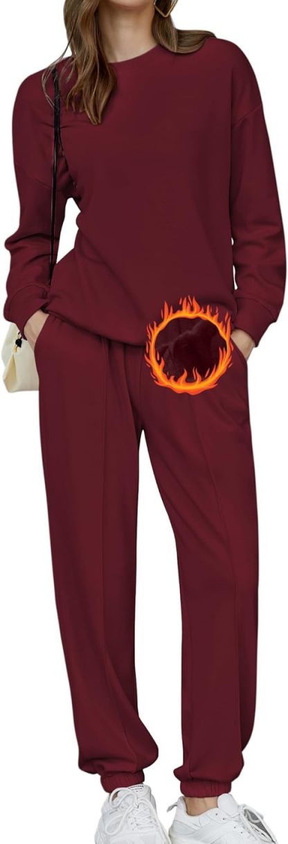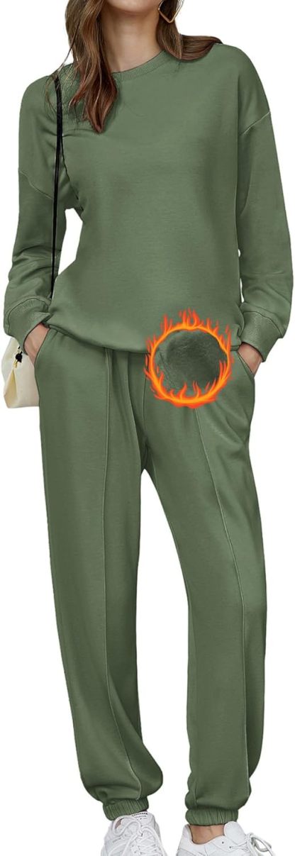 🎄Christmas Clearance🔥Women's Two-Piece Oversized Fleece Sweatsuit Outfit Winter Sherpa Lined Sweatshirt and Sweatpants Sets