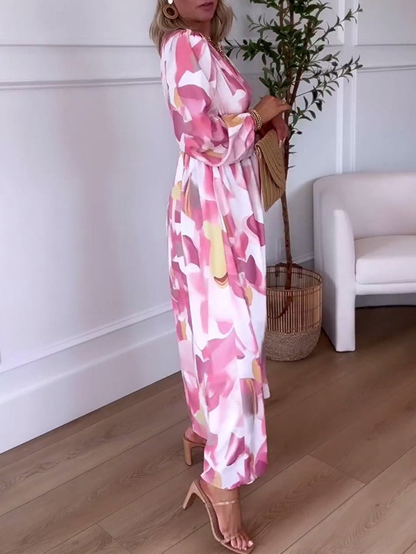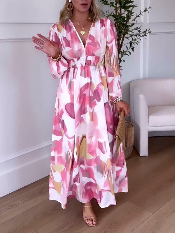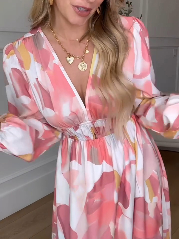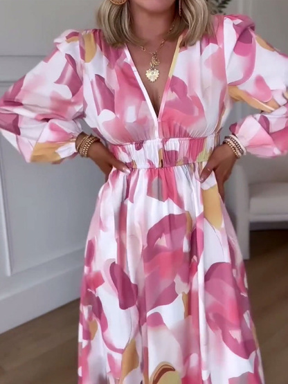 NEW🔥 Long Sleeve Printed Elastic Waist Dress