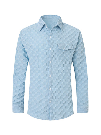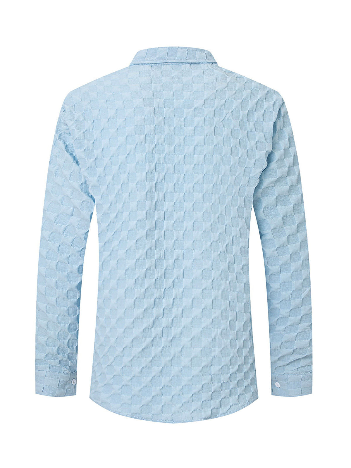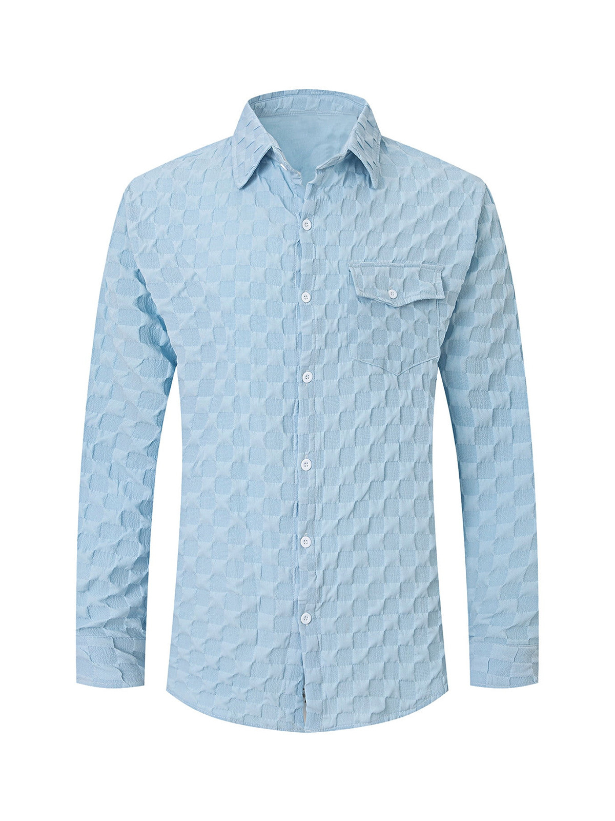 Men's Casual Plaid Jacquard Solid Color Pocket Long Sleeve Shirt