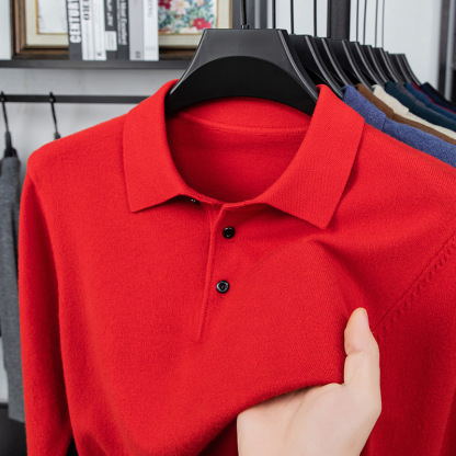 Men's comfortable and fashionable cashmere knitted polo shirt