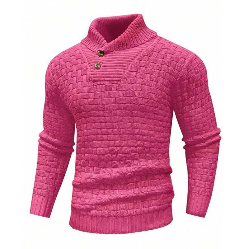 Men's Solid Color Round Neck Pullover Lapel Sweater