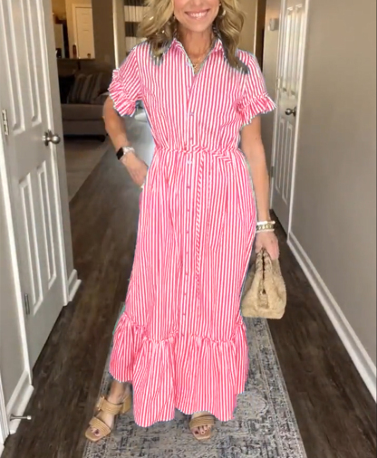 The Striped Cotton Lapel Button Shirt Dress is designed for the modern woman who cares about sophistication and style. The elegant Maxi long dress is perfect for any occasion.